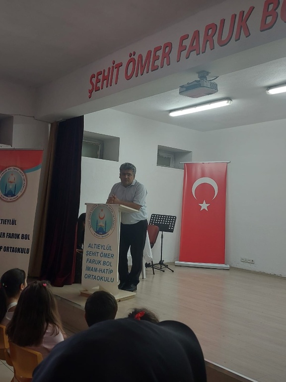 Şehit Ömer Faruk Bol İmam Hatip Ortaokulu’nda 8. sınıf öğrencileri için düzenlenen mezuniyet töreni, büyük bir heyecan ve gururla gerçekleştirildi. Öğrencilerimizin dört yıl boyunca gösterdiği emek ve azmin ardından mezuniyet sevinçlerine öğretmenleri, arkadaşları ve aileleri de ortak oldu.